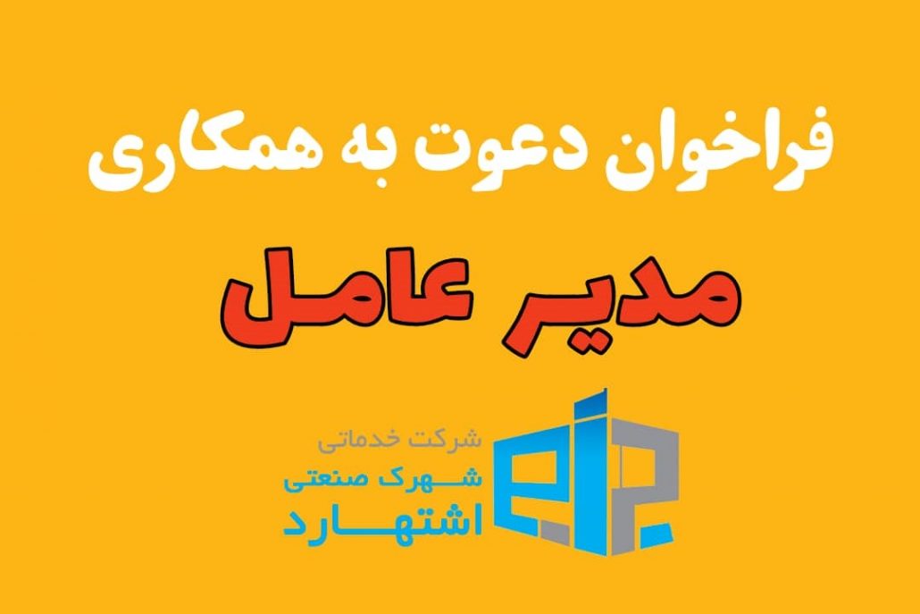 هیأت مدیره شرکت خدماتی شهرک صنعتی اشتهارد در راستای بهرهمندی از ظرفیتهای مدیریتی، از کلیه افراد واجد شرایط که دارای تجربه و صلاحیتهای مرتبط در زمینه مدیریت واحدهای خدماتی و صنعتی و آشنایی لازم با ضوابط شهرکهای صنعتی میباشند، دعوت به عمل میآورد، جهت تصدی سمت مدیرعامل این شرکت، حداکثر ظرف مدت *یک هفته* از تاریخ انتشار این فراخوان، رزومه کاری و مدارک مرتبط خود را به دبیرخانه هیأت مدیره شرکت خدماتی شهرک صنعتی اشتهارد ارسال فرمایند.